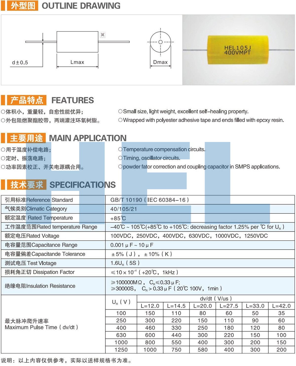 MPT軸向金屬化聚丙烯薄膜電容器 CBB20