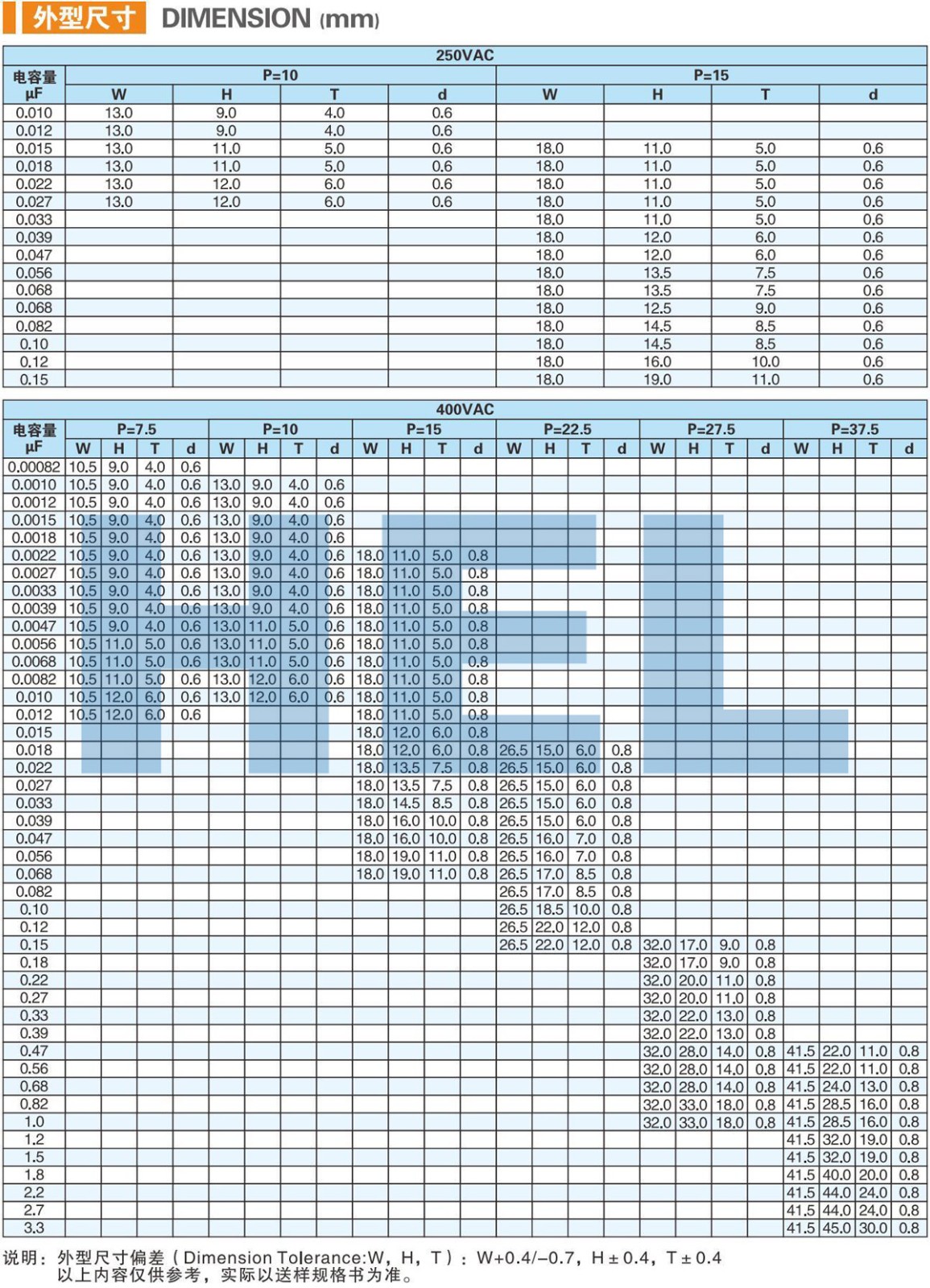 MPC 105℃塑料外盒金屬化聚丙烯薄膜電容器(MKP23)