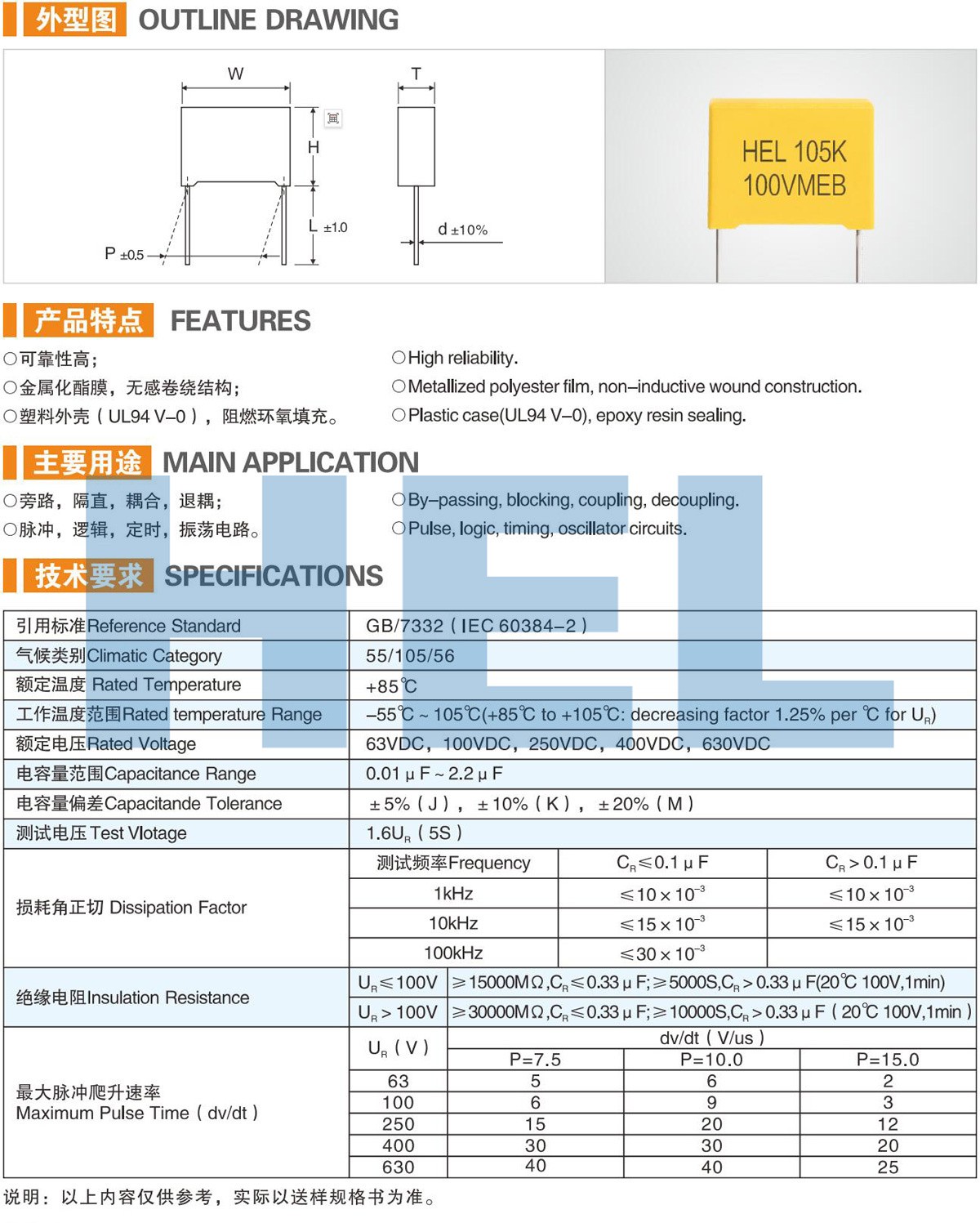 MEB塑料外盒金屬化聚酯薄膜電容器 CL23
