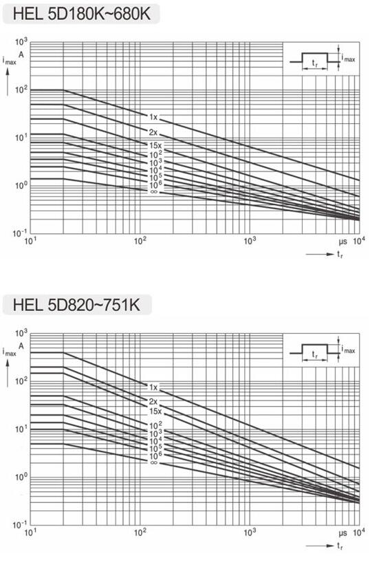 備注:上表KH超強型“電壓沖擊”40次僅適用于壓敏電壓430V及其以上規(guī)格的產(chǎn)品。